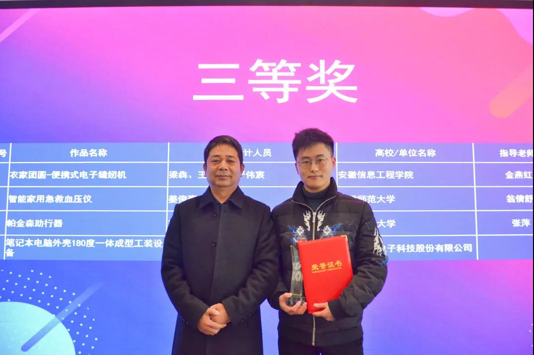 大會伊始,市經(jīng)信局徐總工程師為大賽頒獎儀式致辭,他強(qiáng)調(diào),蕪湖市將建設(shè)省域副中心城市,未來,在長三角一體化的國家戰(zhàn)略帶領(lǐng)下,蕪湖“經(jīng)濟(jì)發(fā)展”“科技創(chuàng)新”“交流服務(wù)”與“生態(tài)支撐”等方面將全面發(fā)展,應(yīng)當(dāng)大力弘揚(yáng)企業(yè)家精神、創(chuàng)業(yè)創(chuàng)新精神和工匠精神,加快工業(yè)設(shè)計(jì)成果轉(zhuǎn)化,希望廣大高校、企業(yè)專注設(shè)計(jì),不斷推出個性化、定制化、特色化的產(chǎn)品和作品。